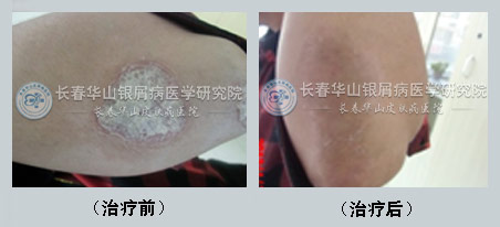 【治疗过程】马先生于2012年12月18日在子女的带领下来到长春华山银屑病医学研究院,主诊专家徐永春为其进行全面的检查,根据其症状以及病发部位,为其进行增敏疗法,主要是针对肢端性的患者效果较高,腿部和手部,马先生双肘和双腿病发部门比较大,再同步308nm冷分子激光系统同步治疗,见效快捷,疗效确切,无痛苦,无伤害,经过一段时间的治疗,马先生恢复得相当好,下面只需要巩固治疗,以巩固疗效,避免牛皮癣再复发。