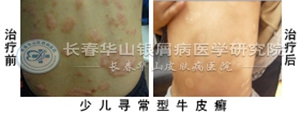 3、青少年牛皮癣消退期症状:消退期时牛皮癣皮损范围慢慢缩小,逐渐消失。皮损消失后,青少年患者皮肤上会出现色素沉着或沉着斑,若患者用药物得当,护理措施正确,色素沉着或斑点很快消失。