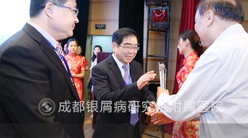 2014银屑病规范诊疗及健康教育高峰论坛在北京国家卫计委召开,为表彰在医生岗位上积极探索,不断创新,锐意进取,为银屑病的临床科研做出了突出贡献的银屑病专家,会议组委会特设立“银屑病临床规范诊疗标兵”奖项,以表彰先进,树立无私奉献的榜样。我院专家戴礼凭借多年来对银屑病科研工作的贡献与诸多成果获得“银屑病规范诊疗标兵”特别荣誉,戴礼表示获此殊荣他非常激动与开心。同时会将这份荣誉带入我今后的工作,为更多的银屑病患者服务。